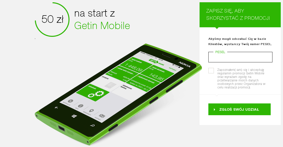 Szczegóły promocji – 50zł na start z Getin