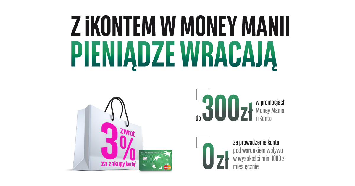 Właśnie ruszyła X edycja promocji Money Mania. Partnerem akcji został BGŻ BNP Paribas oferujący iKonto z 3% moneyback.
