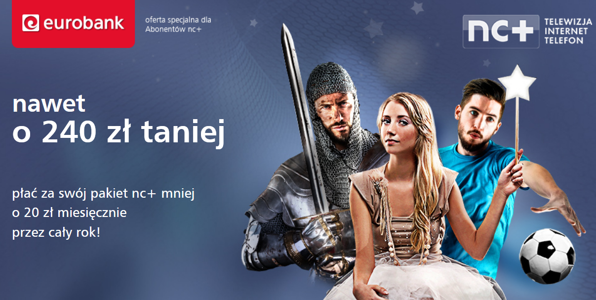 Eurobank prowadzi bardzo podobną akcję do tej z prowadzonej niegdyś z Virgin Mobile. Tym razem jednak partnerem akcji została sieć telewizji cyfrowej nc+.