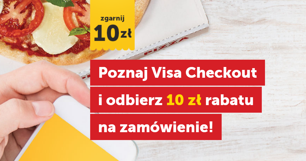 Po dodaniu do koszyka dań na kwotę min. 20 zł i przejściu do kasyzobaczymy informację o rabacie przy płatności z wykorzystaniem Visa Checkout:
