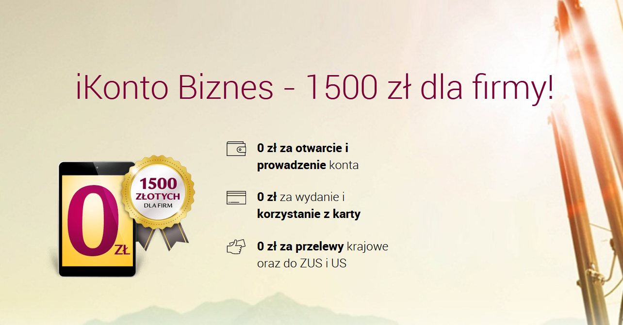 iKonto dla firmo będzie prowadzone bezpłatnie dla uczestników promocji 1500 zł na start. Jest to bardzo dobra wiadomość, jako że wcześniej trzeba było spełnić warunki dodatkowe.