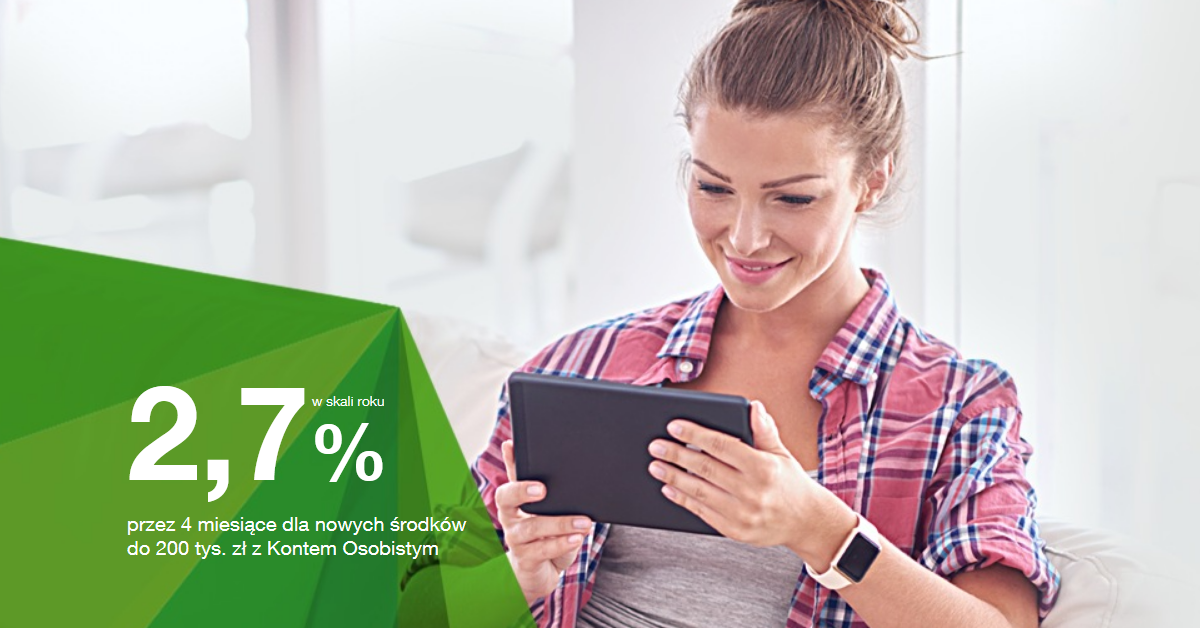 Zyskać możemy 2,7% w skali roku dla nowych środków do kwoty 200 tys. zł na okres 4 miesięcy.