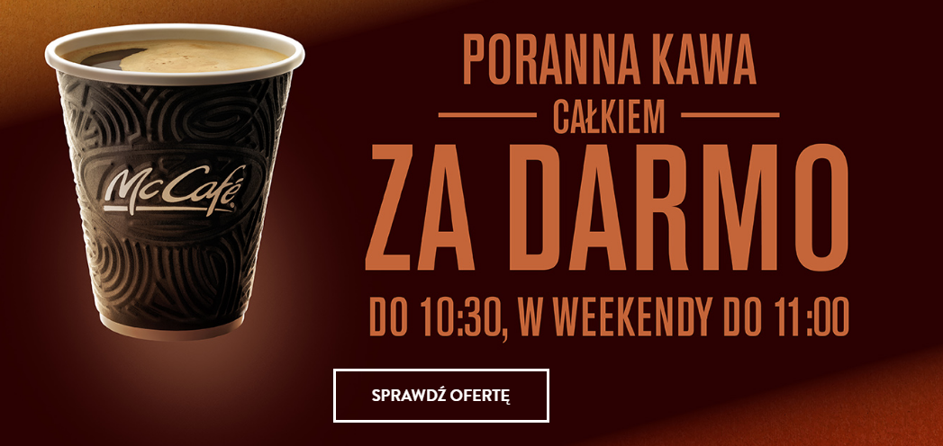 Wystarczy przyjść do McDonald’s w tygodniu do godziny 10:30 a w weekendy do godziny 11:00, aby odebrać darmową kawę.