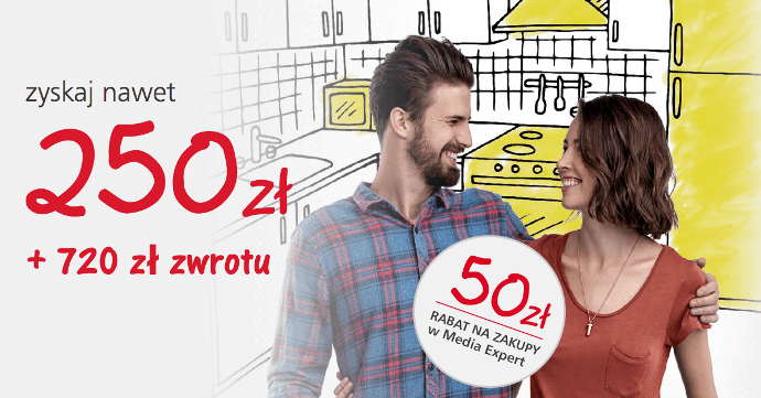 W prosty sposób do zgarnięcia jest 250 zł premii, bon 50 zł do Media Expert oraz nawet 720 zł w postaci 5% moneyback za niektóre zakupy.