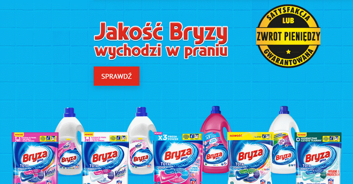 Wraz z wejściem na rynek nowego produktu marki Bryza mamy okazję do przetestowania kapsułek i/lub żeli Bryza i otrzymania aż 27,99 zł zwrotu!