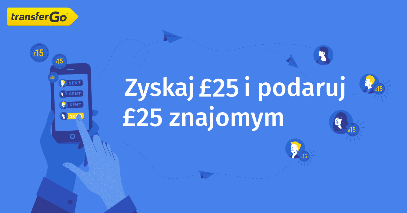 15 funtów (75 zł) w programie poleceń TransferGo + 10 funtów (50 zł) za skorzystanie z kodów