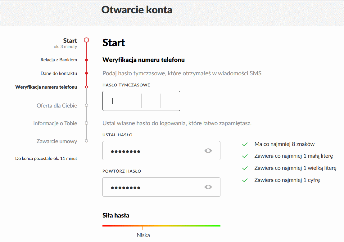Założone. Musiałem normalnie wypełnić wniosek przez dedykowaną stronę internetową ustalając login i hasło, które były potrzebne tylko do procesu wnioskowania o konto. Umowę sfinalizowałem w oddziale banku i tu uwaga, dopiero w drugim podejściu. Pani w banku musiała skonsultować moją sytuację z centralą.