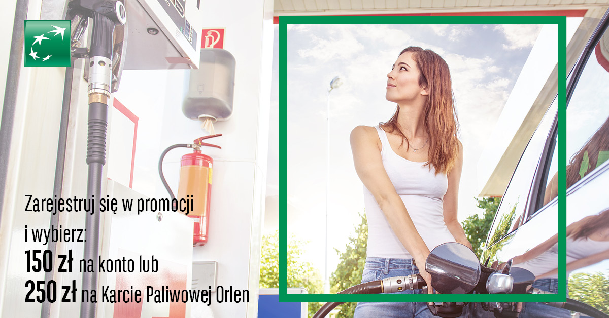 Ruszyła nowa promocja konta osobistego w BNP Paribas w ramach której zgarnąć można 150 zł w gotówce lub 250 zł na karcie paliwowej Orlen.