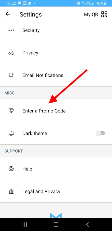 - Po otwarciu aplikacji kliknij w prawym górnym rogu w kółko z pierwsza literą Twojego imienia i z listy wybierz opcję „Enter a Promo Code”: