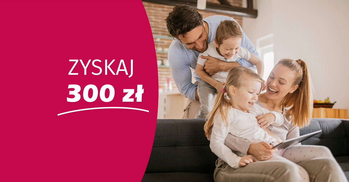 Premia podzielona jest na dwie części: Pierwsza to 200 zł w gotówce za czterokrotne spełnienie dwóch prostych warunków zwalniających z opłat za konto i kartę z bezpłatnymi bankomatami oraz kolejne 100 zł w gotówce za złożenie wniosku w programie Rodzina 500+