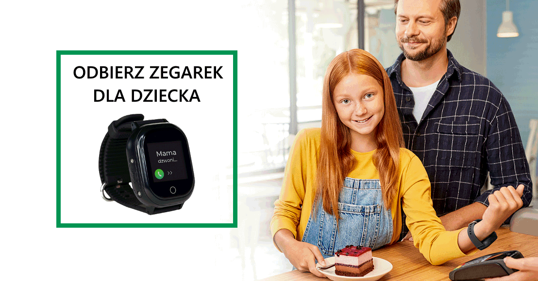 W ramach promocji „Karta Samodzielniaka” Twoje dziecko otrzyma w prezencie smartwatch za pomocą którego skontaktuje się z Tobą i za pomocą którego otrzymasz informację o miejscu przebywania Twojego dziecka, dzięki modułowi GPS. Megazegarek to także możliwość samodzielnego wykonywania płatności zbliżeniowych zegarkiem przez Twoją pociechę.