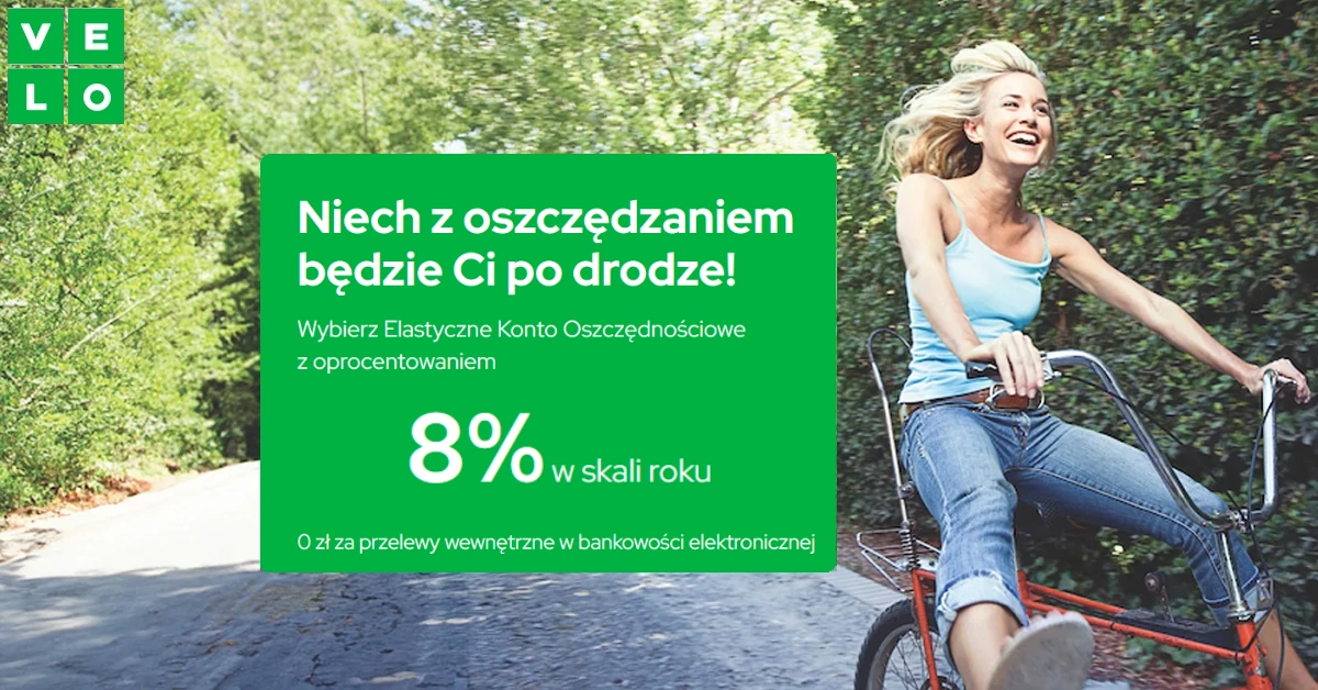 VeloBank kolejny raz przedłużył promocyjne oprocentowanie 8% na Lokacie Mobilnej do 50 tys. zł oraz Elastycznym Koncie Oszczędnościowym, na którym dodatkowo wzrosła kwota maksymalna oszczędności na 8% do 300 tys. zł! Dzięki temu mamy dwie możliwości korzystnego lokowania naszych oszczędności na najwyższy procent.