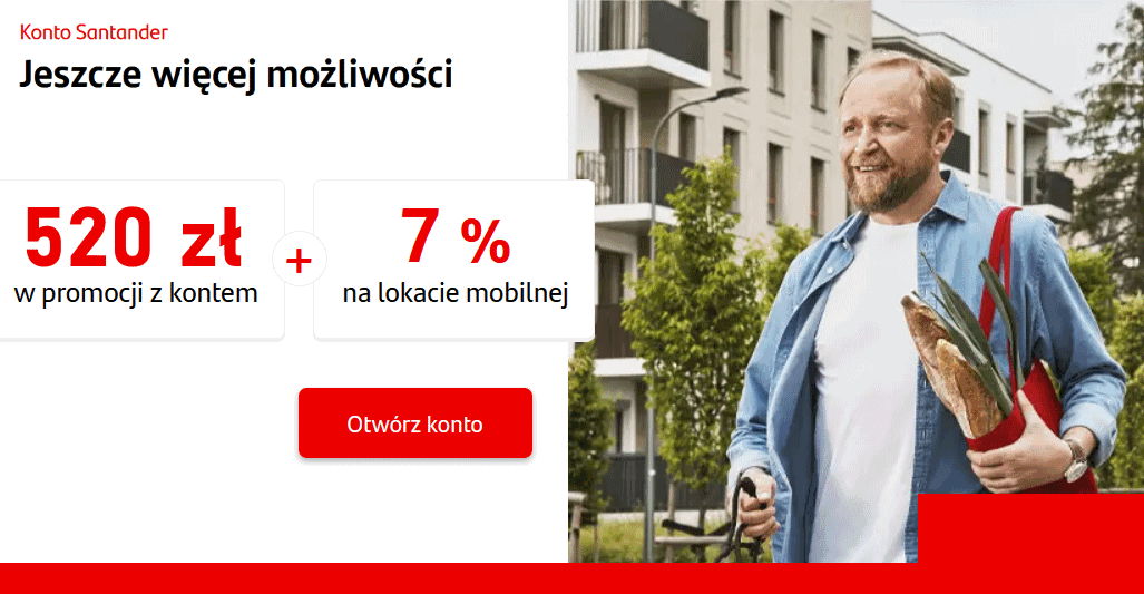 Nowy miesiąc to tradycyjnie nowa promocja konta osobistego w Santander Bank Polska. Tym razem w kumulacji promocji zyskamy łącznie 520 zł na start (z czego aż 400 zł to premia pieniężna) + premię 100 zł za założenie konta dla każdego dziecka. Zyskać też możemy do 300 zł zwrotu rocznie za domowe rachunki opłacane z konta.