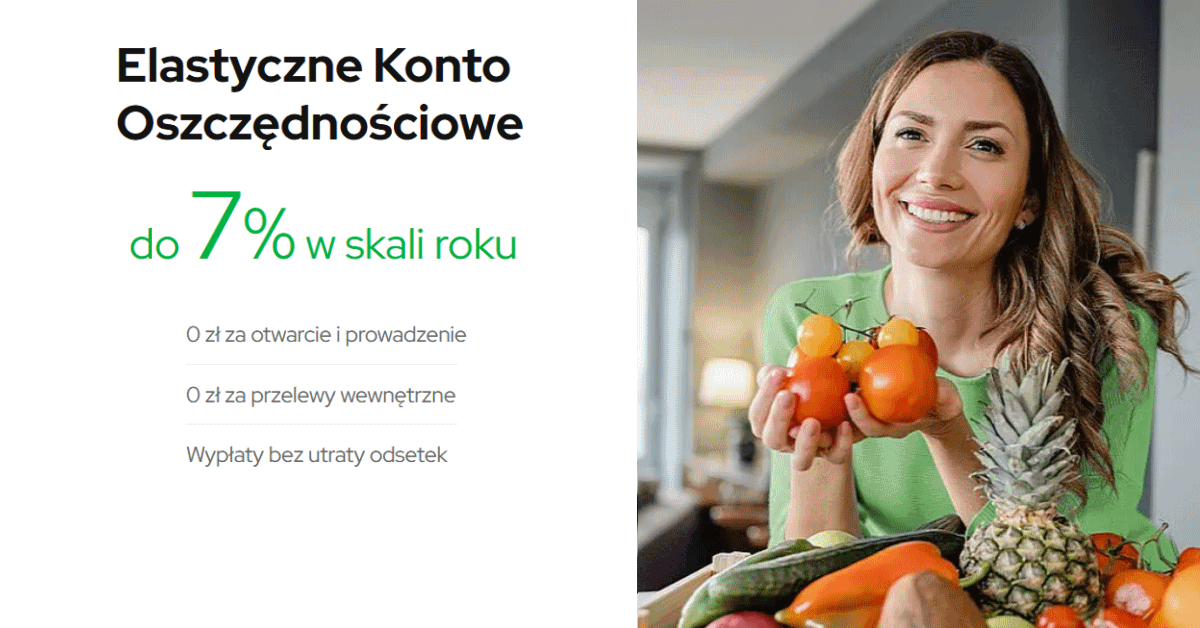 Elastyczne Konto Oszczędnościowe na 7% do 100 tys. zł oraz 6,3% dla nadwyżki do 300 tys. zł (nowi klienci) lub 6,3% do 300 tys. zł (obecni klienci)