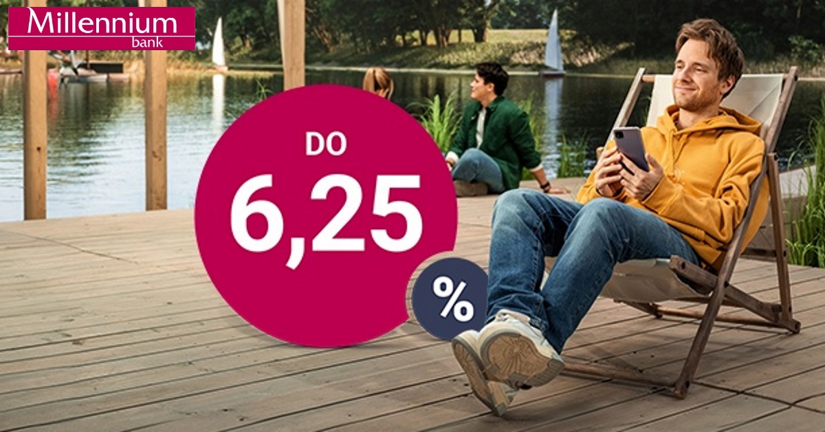 Bank Millennium w 62. edycji popularnej promocji Konta Oszczędnościowego Profit podwyższył oprocentowanie na 6,25% w skali roku do 100 tys. zł dla nowych środków na 91 dni. Nowi klienci zyskają dodatkowo rekordowe 650 zł premii za konto Millennium oraz 300 zł za kartę kredytową.