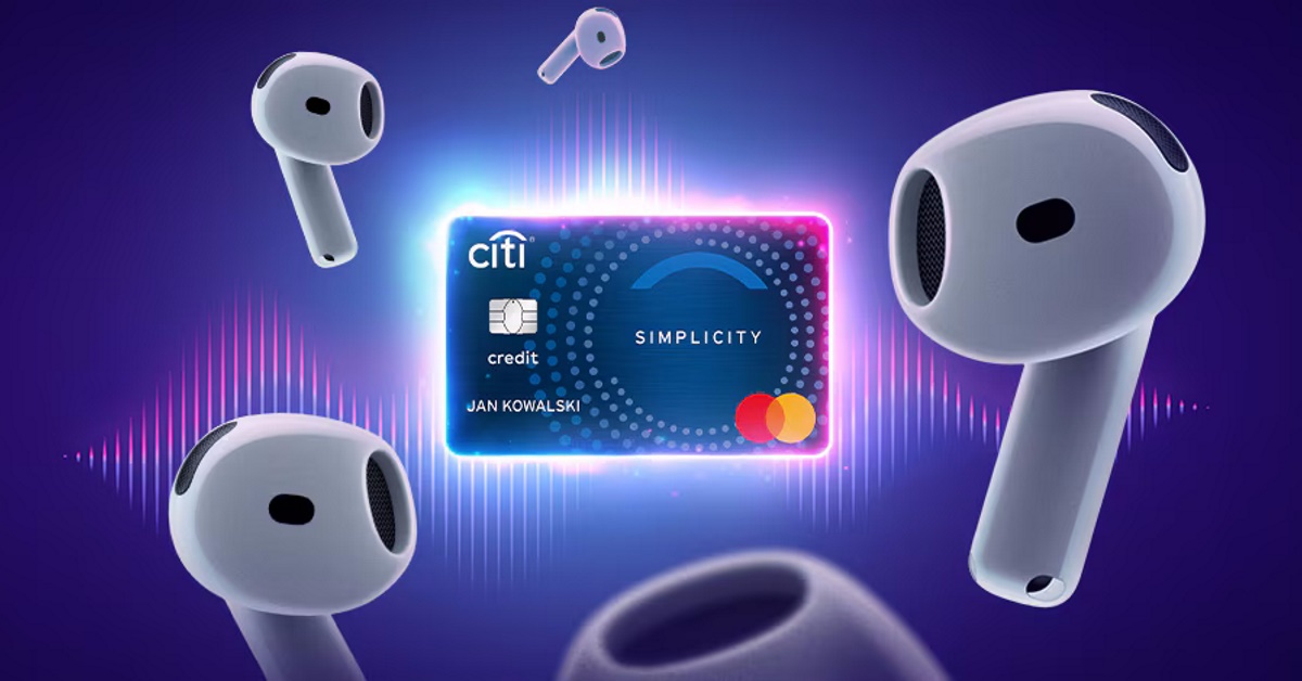 Citibank przygotował ciekawą propozycję dla osób posiadających iPhone’y. W zamian za przetestowanie karty kredytowej Citi Simplicity darmowej przez pierwszy rok otrzymamy słuchawki Apple Airpods 4 + kolejne 300 zł w bonach programu Mastercard Bezcenne Chwile wymiennych na vouchery w wielu sklepach (m.in. Allegro, Circle K, Decathlon, RTV EURO AGD i wielu innych).