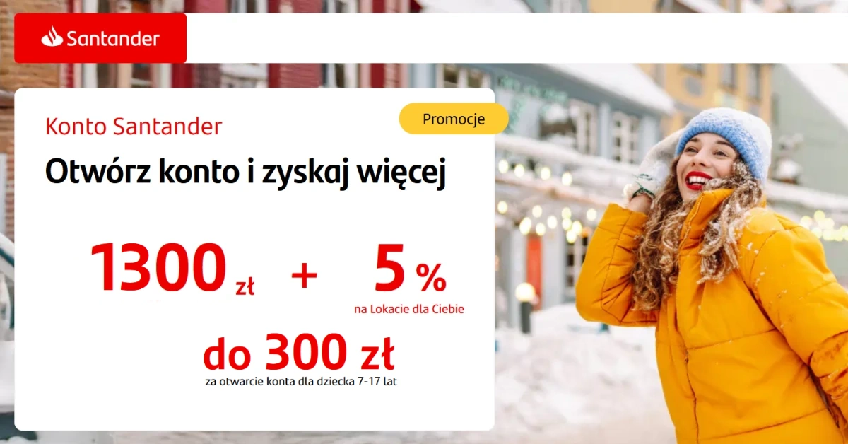 → Odbierz 1300 zł za Konto Santander + opcjonalnie 5% dla oszczędności