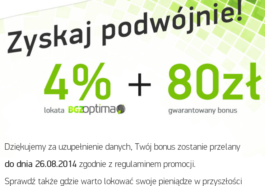 Bank Zachodni WBK wciąż zaskakuje. Po 12-miesięcznej lokacie na 4% przyszła pora na kolejną bardzo dobrą ofertę. Tym razem 4% osiągniemy na lokacie 4 miesięcznej dla nowych środków. Przypomnę, że wciąż można skorzystać z innej […] Więcej