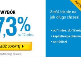 Również Polbank podwyższa oprocentowanie swoich lokat. Lokata Wyjątkowa, bo o niej mowa, do końca września oferuje oprocentowanie 7,3% brutto. Lokatę można założyć na okres 5 miesięcy. Ograniczenie Na Lokacie Wyjątkowej możesz ulokować te środki, które […] Więcej